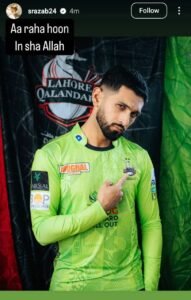 The Zimbabwean cricketer shared a photo of himself in the Qalandars kit on his certified Instagram handle, captioning it: “Aa raha hoon In Sha Allah” [I’m coming, God willing].